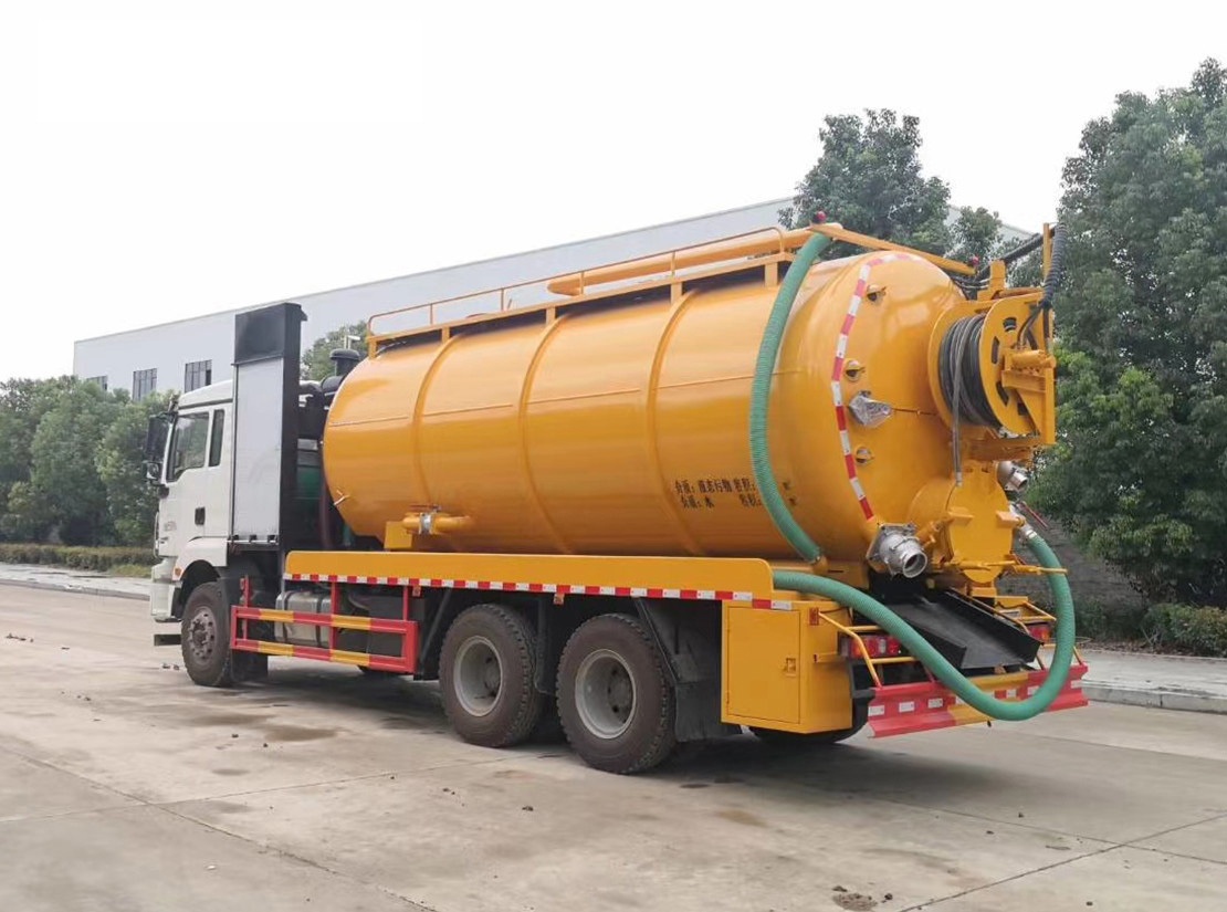 該車裝有取力器,真空泵,用于吸污;裝有高壓水泵,高壓水管用于清洗;罐體尺寸(直段長×直徑)(mm):5400×2150,罐體前部為清水罐,罐體后部為污水罐,污水罐(直段長×直徑)(mm):3000×2150,污水罐有效容積:9.4立方米;清水罐(直段長×直徑)(mm):2400×2150,清水罐有效容積:7.52立方米;清水罐和吸污罐為兩個**罐體,清洗功能時用水罐,吸污功能時用吸污罐,污水罐和清水罐不可同時裝載;整車長/軸距的對應關系為(mm):9900/4375+1400,10100/4575+1400;隨底盤選裝駕駛室;側后防護材質為Q23**碳鋼,連接方式:左右側面及后下部防護均采用焊接連接,后部防護斷面尺寸(mm):280×50,后部防護離地高度(mm):500;采用發動機型號為:YCS06270-60,WP7.270E61,WP7.300E61;ABS系統生產廠家及型號分別為:西安正昌電子股份有限公司(ZQFB-V).